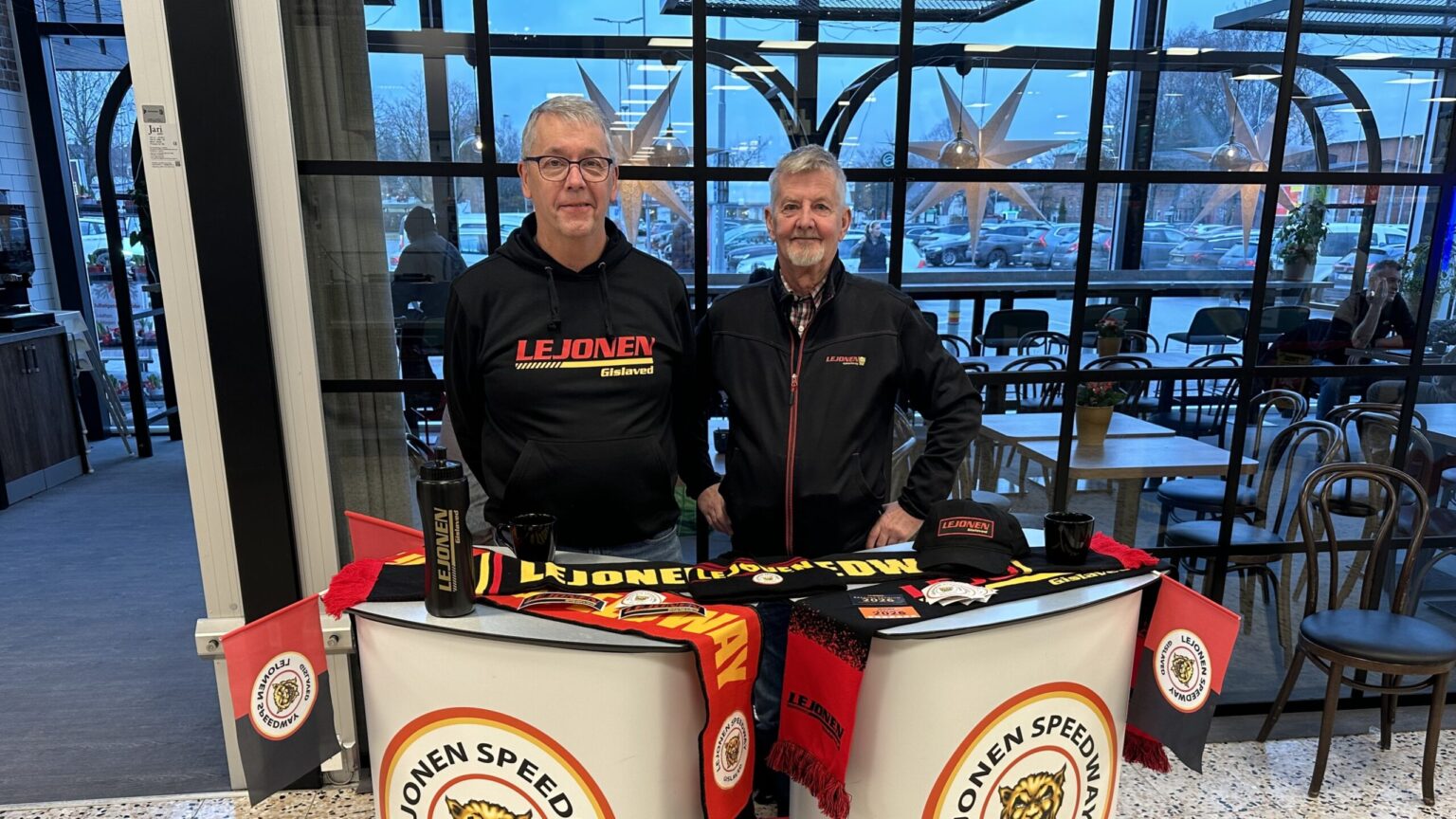 Under fredagen och lördagen har Lejonen sålt årskort och souvenirer i ICA Kvantum i Gislaved. På bilden syns klubbens ordförande Anders Melkersson och funktionären Stefan Larsson.